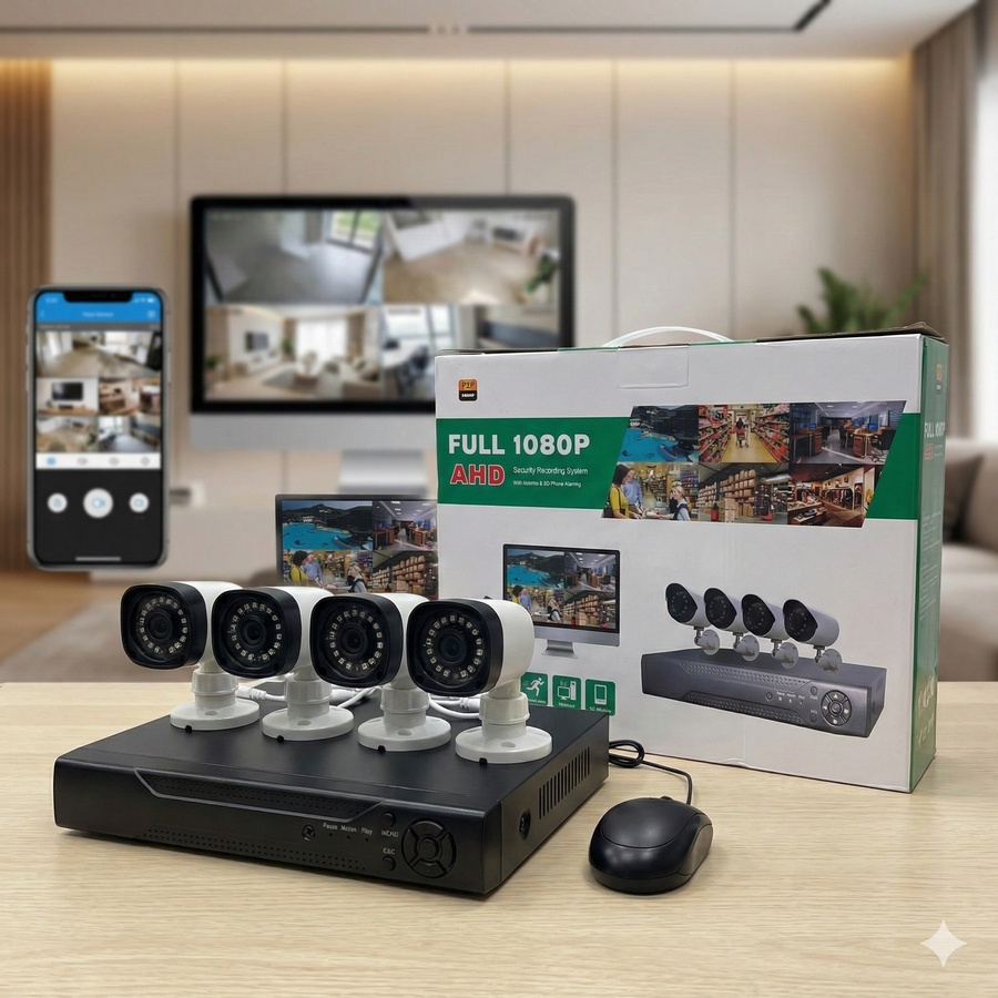 نظام كاميرات CCTV AHD بدقة Full HD 1080P – مع جهاز تسجيل DVR ودعم المشاهدة عبر الإنترنت