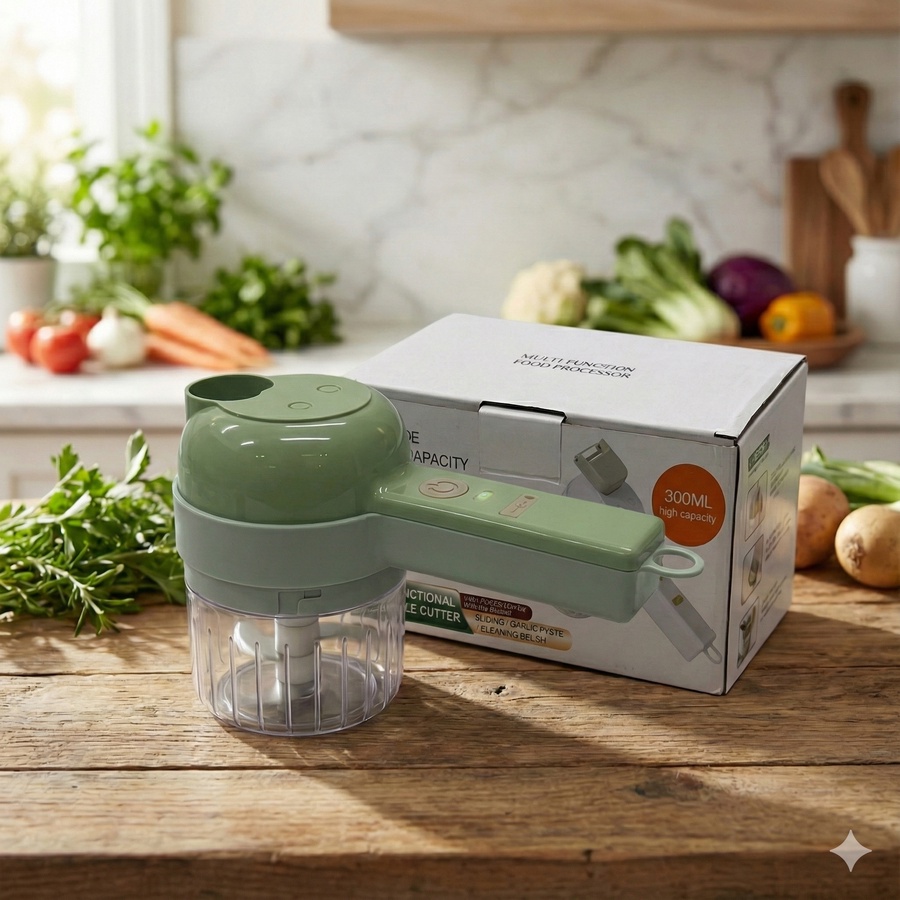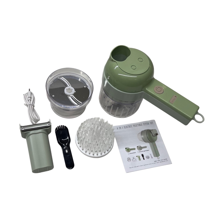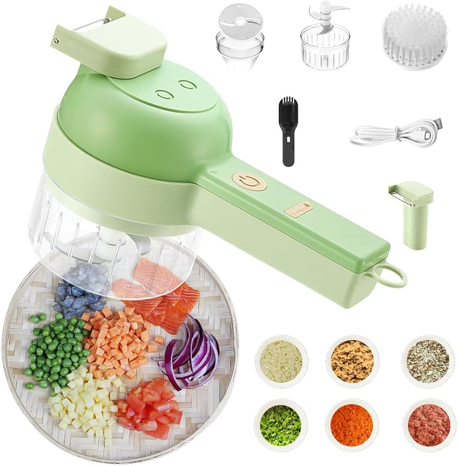 - مجموعة قطاعة خضروات كهربائية محمولة 4 في 1. تم تصميمها للمساعدة في تحضير الطعام في المطبخ بسرعة وكفاءة.