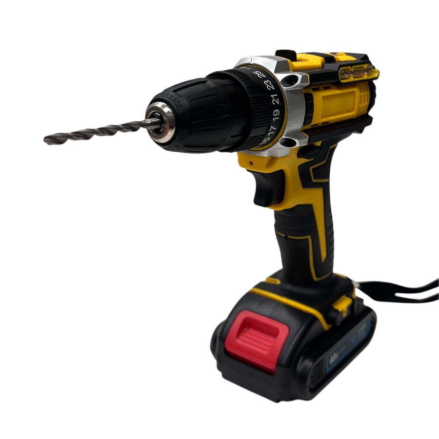 استمتع بأداء قوي وتعدد في الاستخدام مع هذا الطقم الشامل للمثقاب اللاسلكي، المصمم لإنجاز مهام الحفر والفك والتركيب بسهولة وكفاءة في المنزل أو الورشة