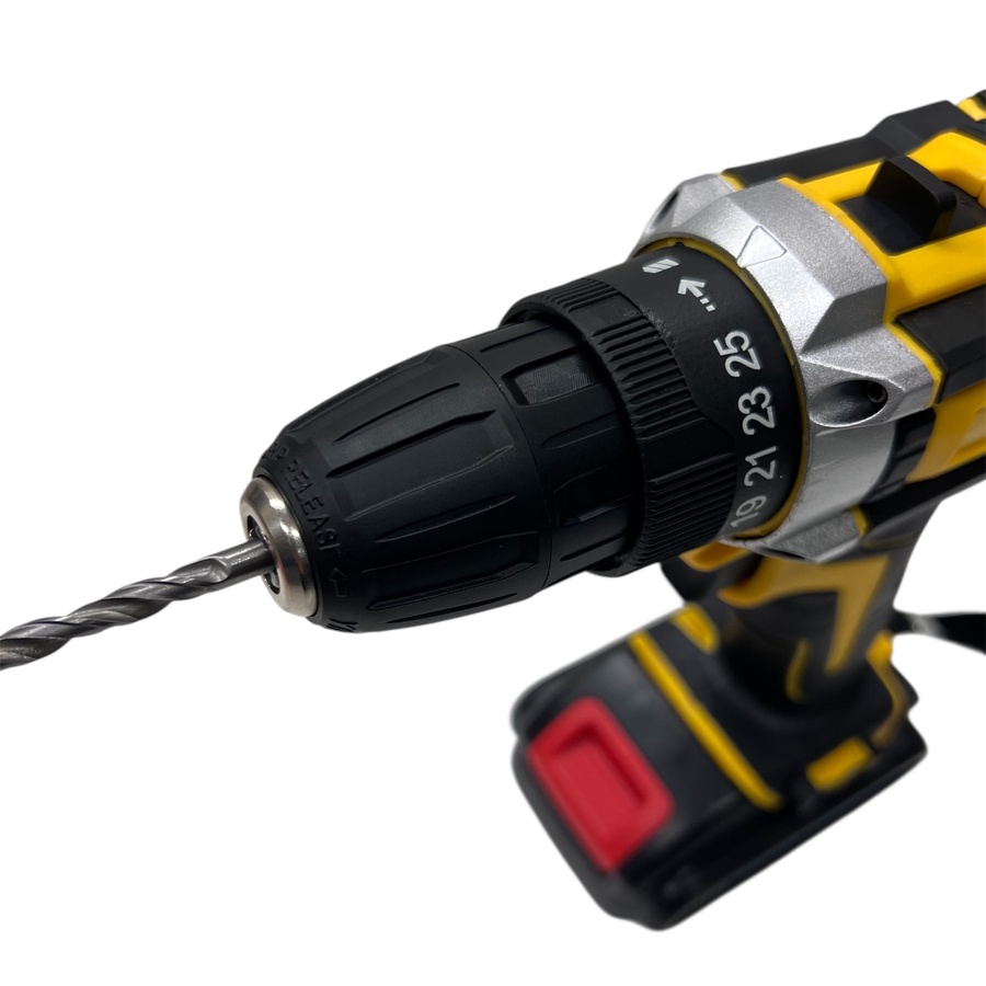 تحكم دقيق: يتميز بـ 25 إعدادًا لعزم الدوران (البعض يشير إلى 25+3 وضعيات/ فتح، شد، ثقب) لتوفير دقة أكبر عند العمل ومنع إتلاف البراغي أو الأسطح.