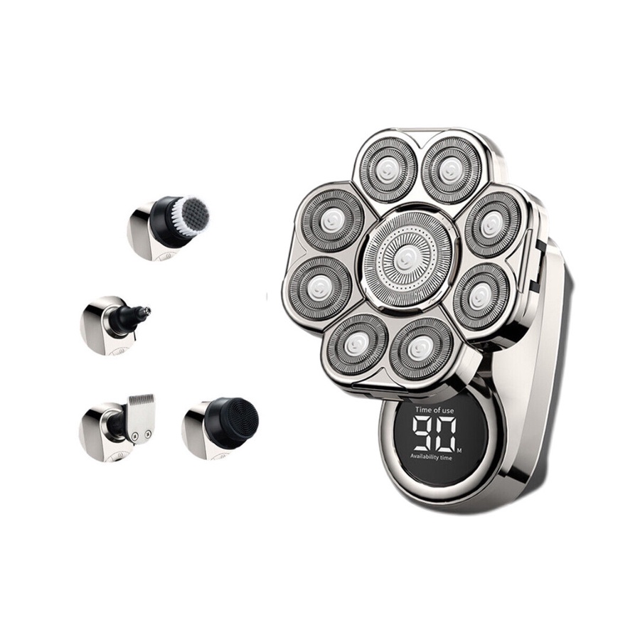 طقم متكامل 6 في 1 يشمل ماكينة الحلاقة، مشذب الأنف والأذن، مشذب الشعر، فرشاة تنظيف، مساج للوجه، ومشذب للجسم