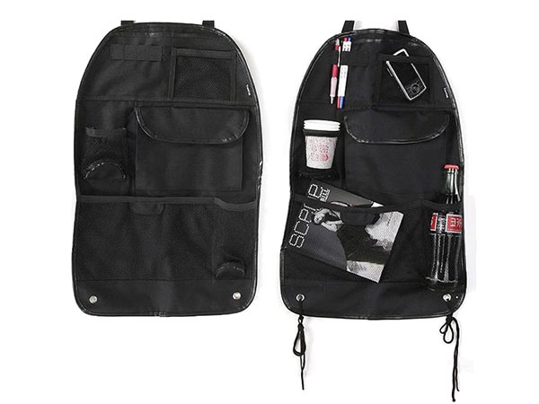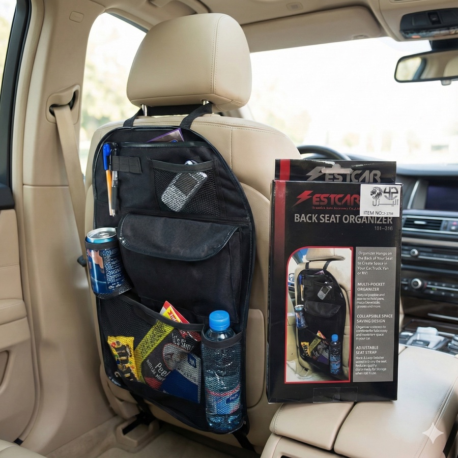 منظم عملي يُثبّت على ظهر مقعد السيارة لتوفير مساحة تخزين مرتبة وسهلة الوصول للأغراض اليومية داخل السيارة.
