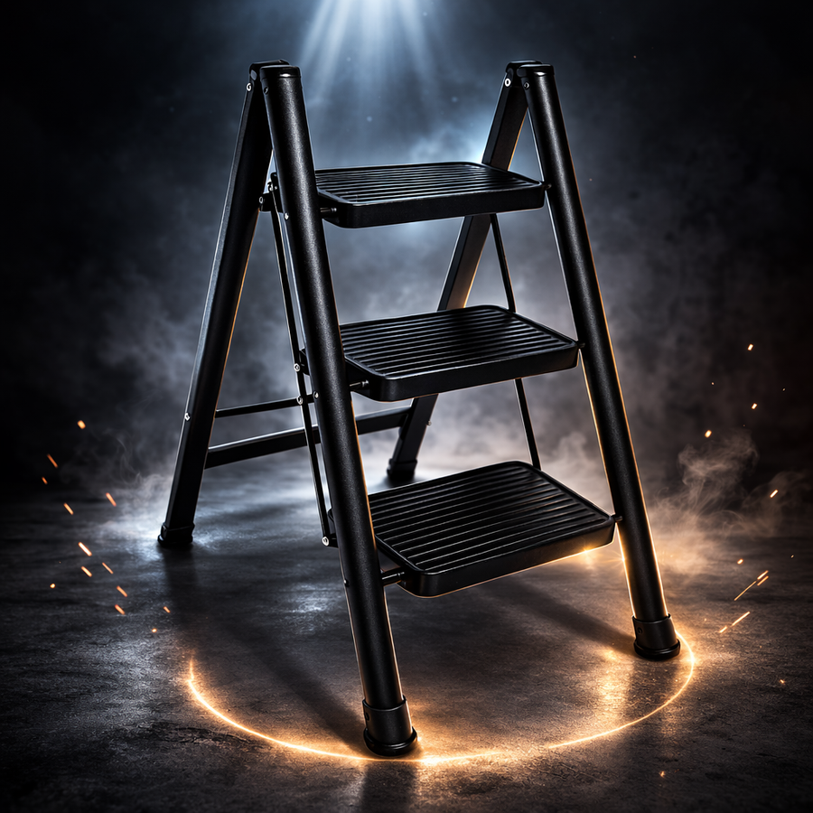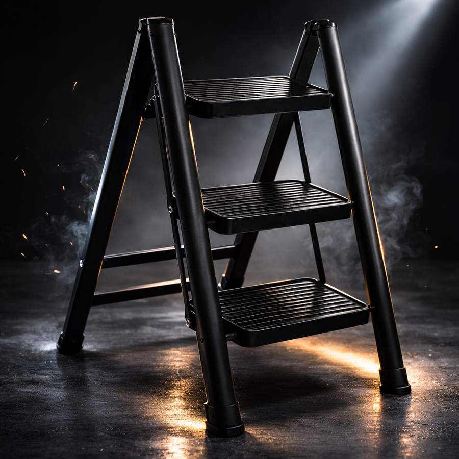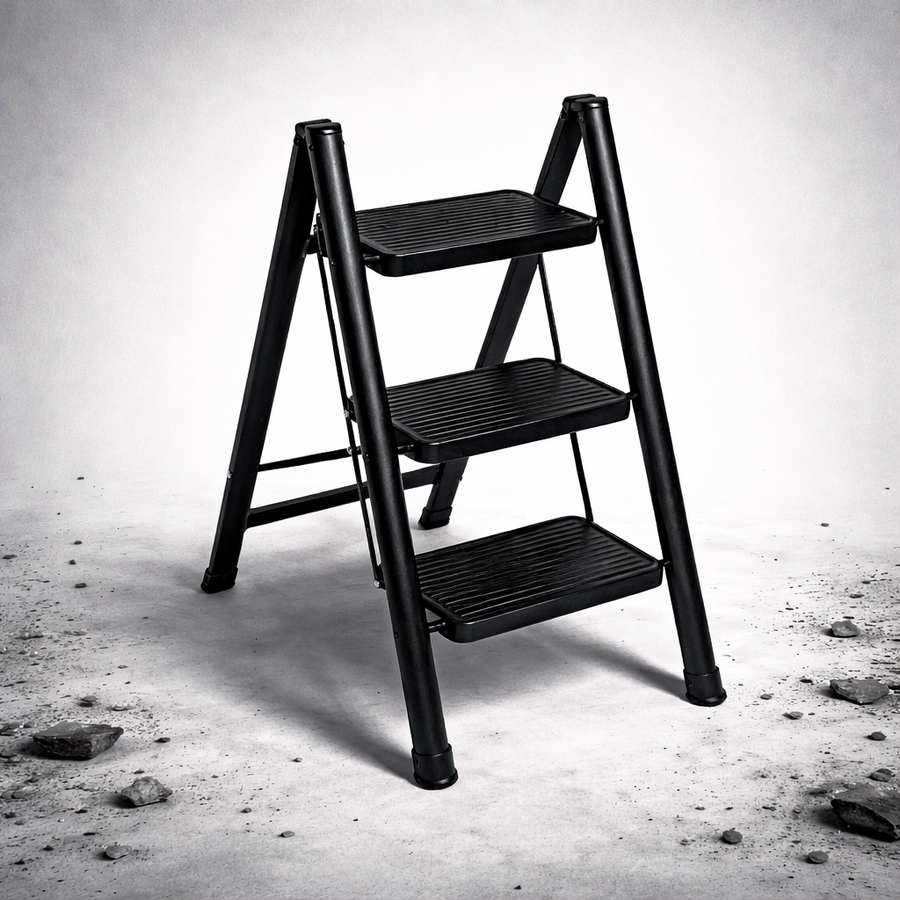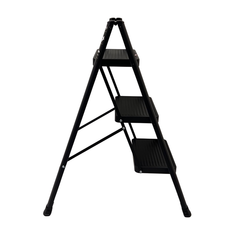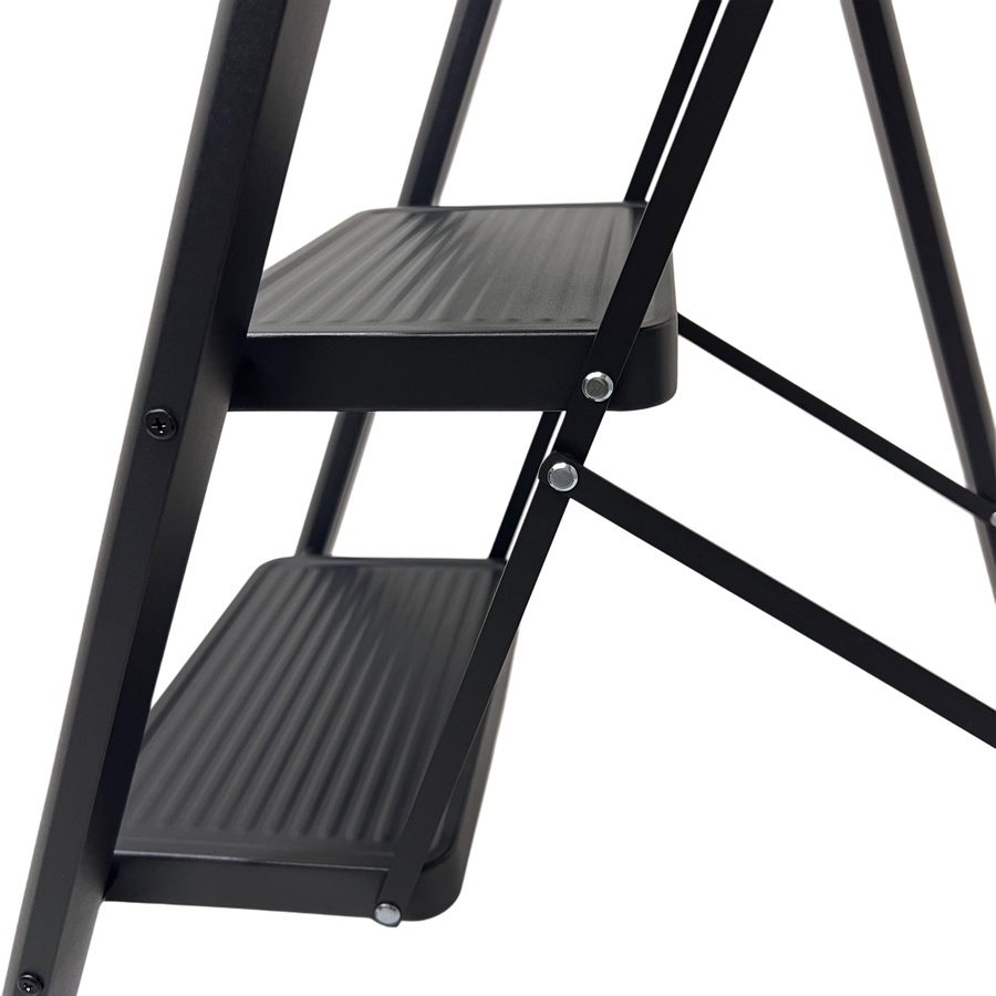 • هيكل معدني قوي بطلاء أسود يمنح السلم مظهرًا أنيقًا ومتانة للاستخدام.