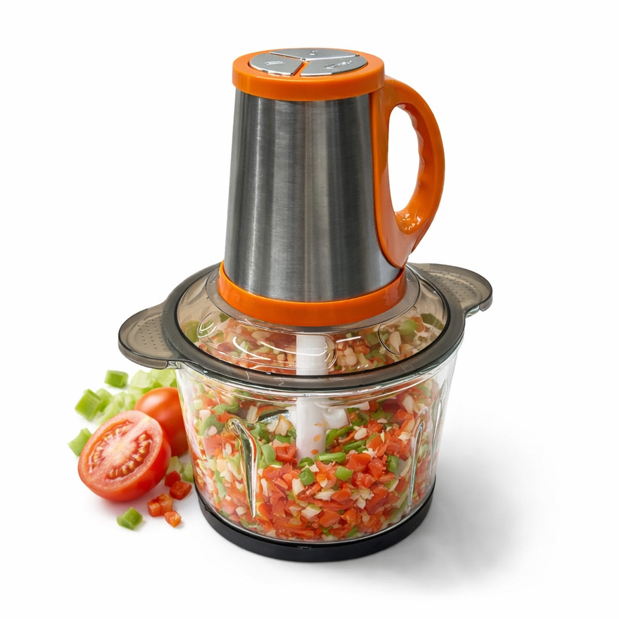 مكينة فرم كهربائية متعددة الاستخدامات من Bihart مخصصة لفرم اللحم ومعالجة مجموعة من المكونات مثل الخضار وبعض الأطعمة الأخرى، بتصميم مدمج مناسب للاستخدام المنزلي