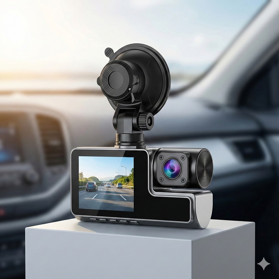 كاميرا سيارة داش كام مخصصة لتسجيل الرحلات اليومية بجودة HD، مع تصميم عملي وشاشة مدمجة لعرض التسجيلات مباشرة.