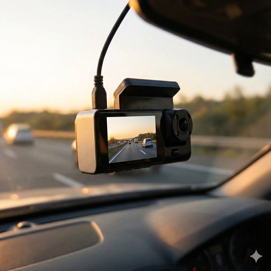 مسجل ثنائي القناة مدمج في مرآة الرؤية الخلفية