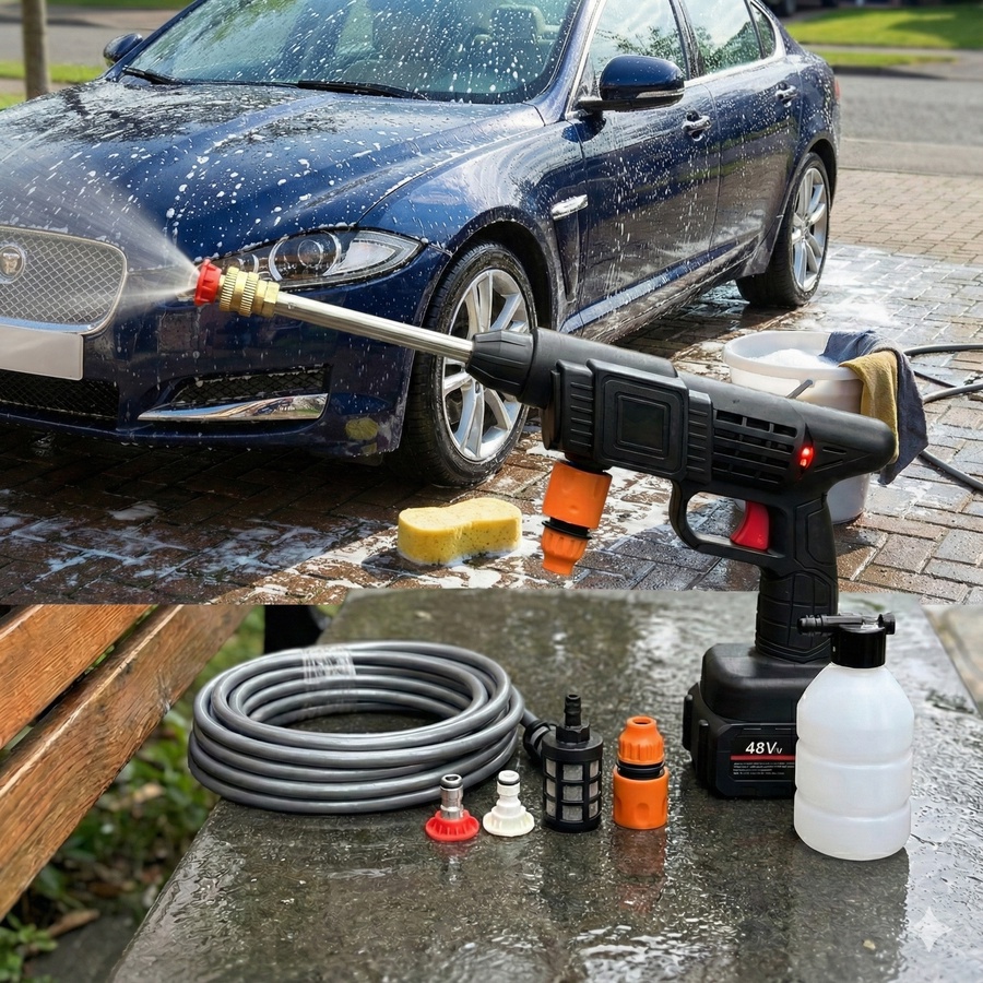 . استخدامات متعددة: مثالي لغسل السيارات والدراجات النارية، تنظيف الأرصفة والأثاث الخارجي، سقي الحدائق، وإزالة الطحالب من الجدران والأسطح.
