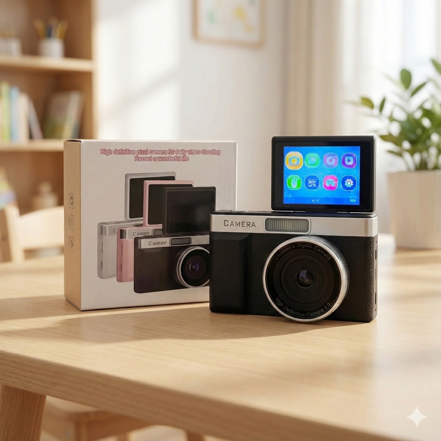 - هذه كاميرا فيديو رقمية صغيرة للأطفال قابلة للطي بشاشة عالية الدقة