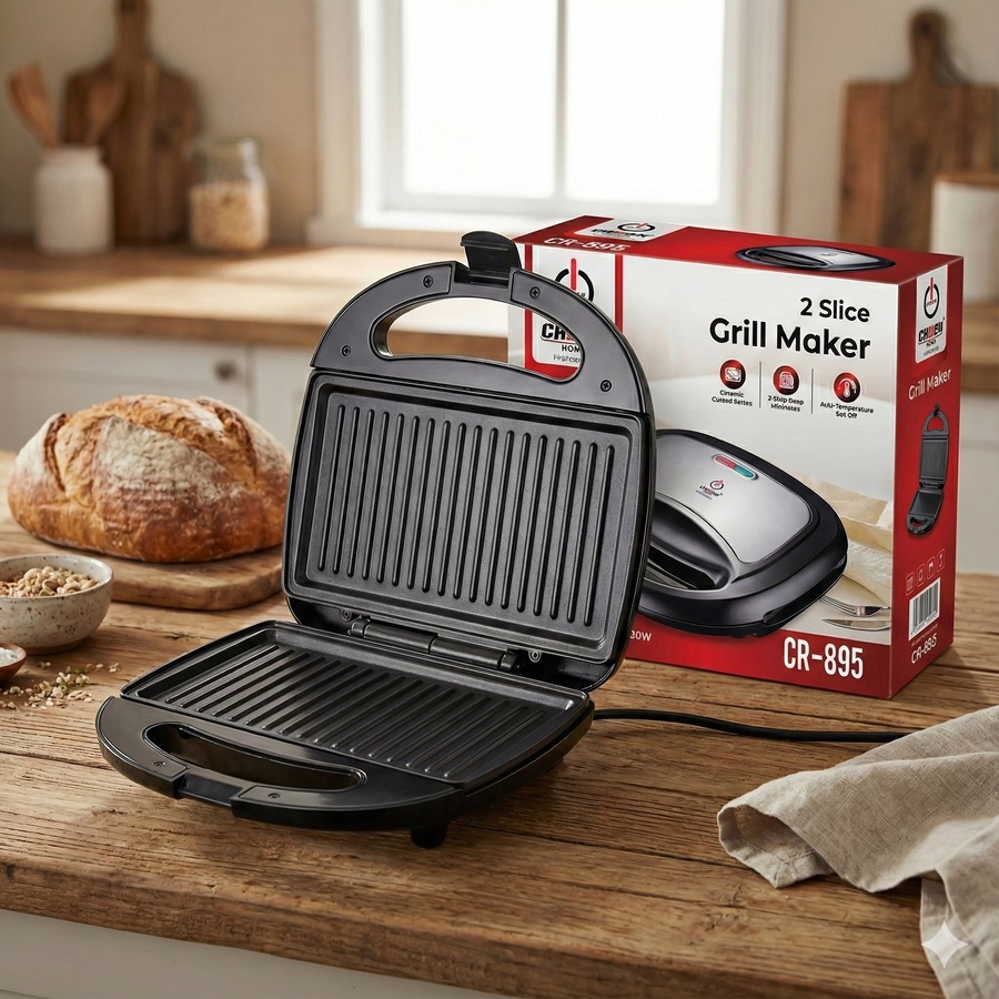 . متعددة الاستخدامات: يمكن استخدامها لتحضير السندويشات بالإضافة إلى شواء مجموعة متنوعة من الأطعمة مثل الدجاج، اللحوم، الأسماك، والخضروات.