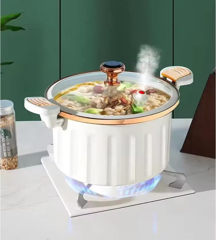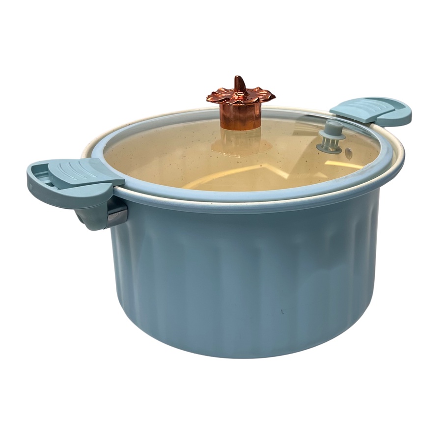 قدر طهي بنظام الميكرو ضغط من DMG، مصمم للطهي اليومي وتحضير كميات كبيرة، مع غطاء قفل دوّار وتصميم عملي.