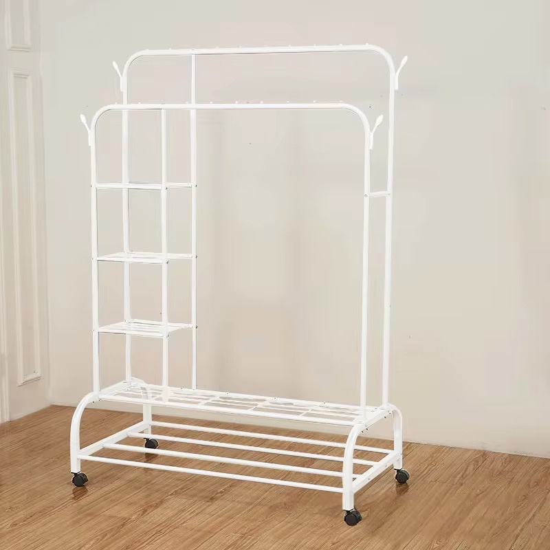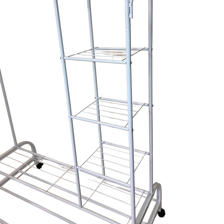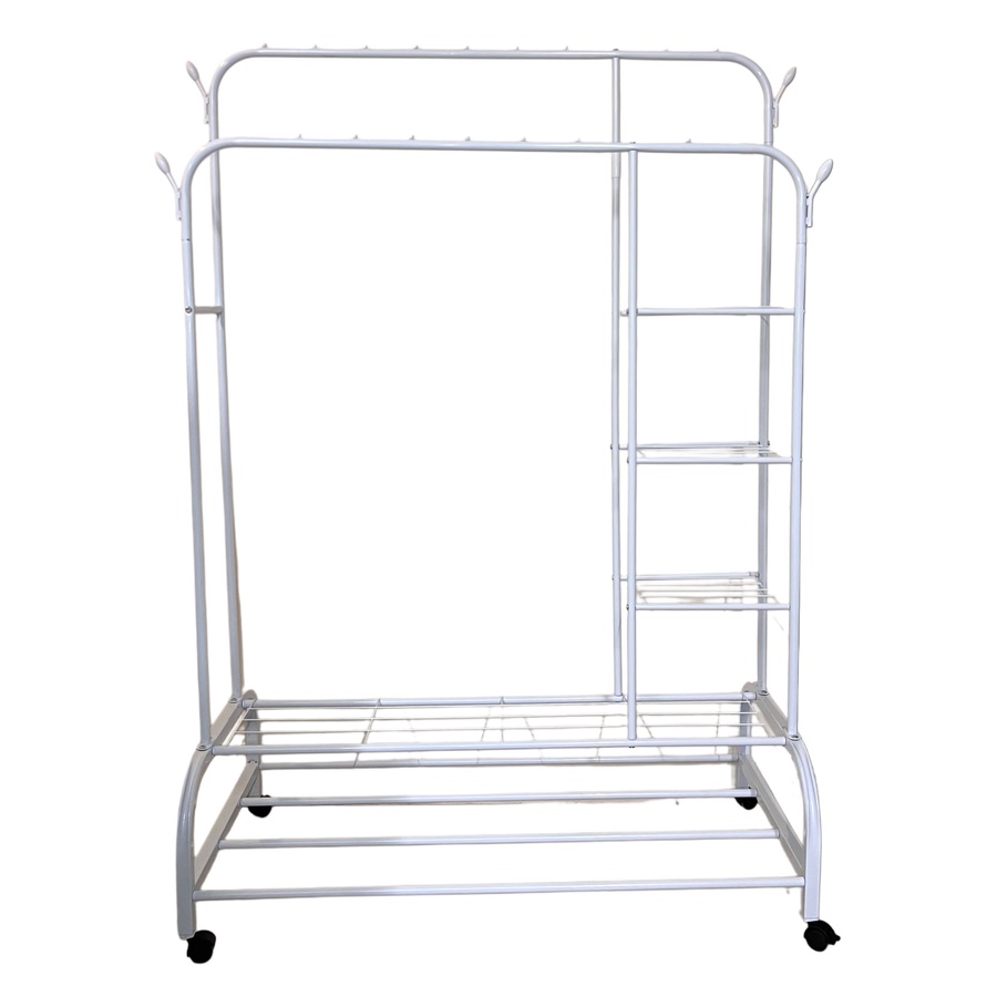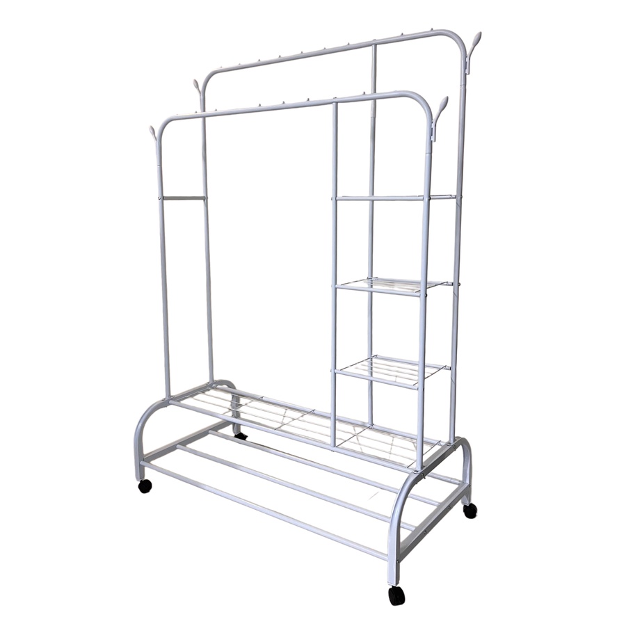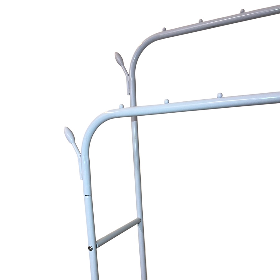 • حامل ملابس عملي بتصميم مزدوج القضيب يوفر مساحة منظمة لتعليق الملابس والاستخدام اليومي.