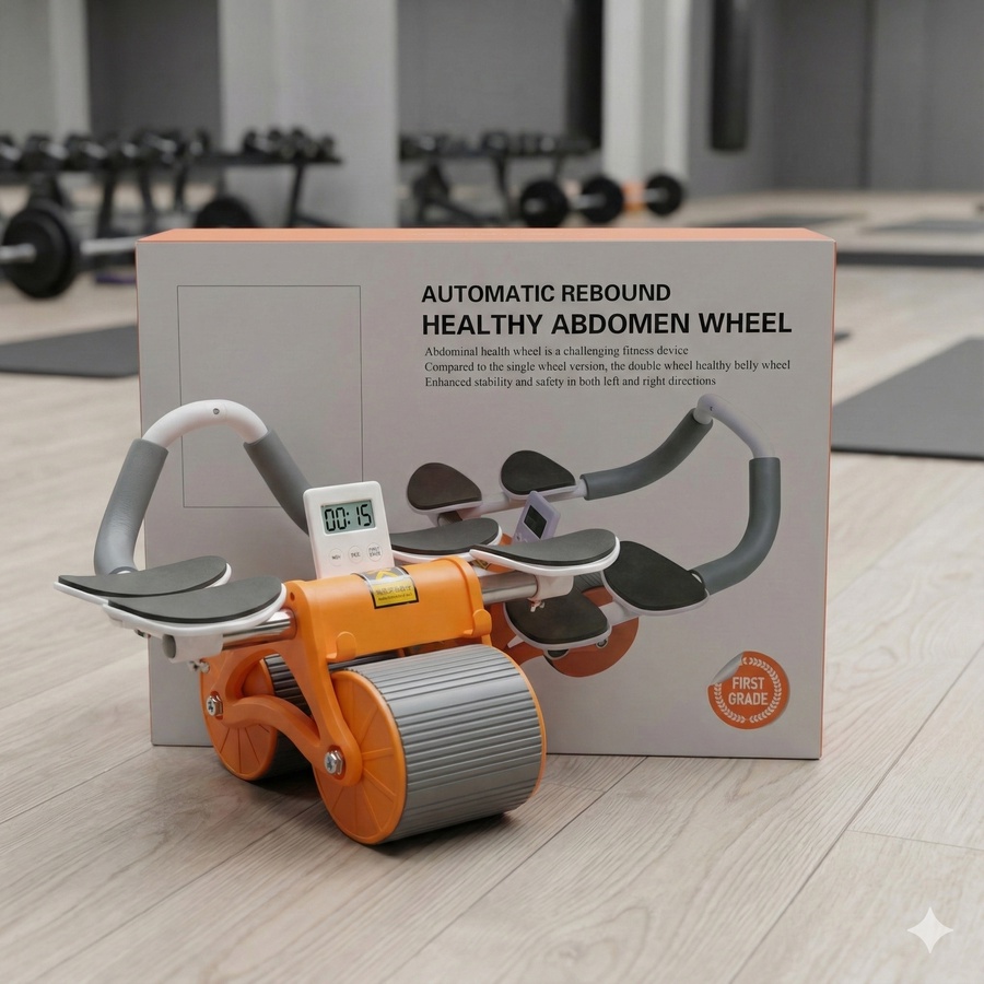 عجلة تمارين مصممة لدعم تمارين البطن واللياقة، تعمل بنظام ارتداد تلقائي مع تركيز على الثبات والسلامة أثناء الاستخدام.