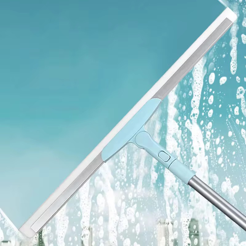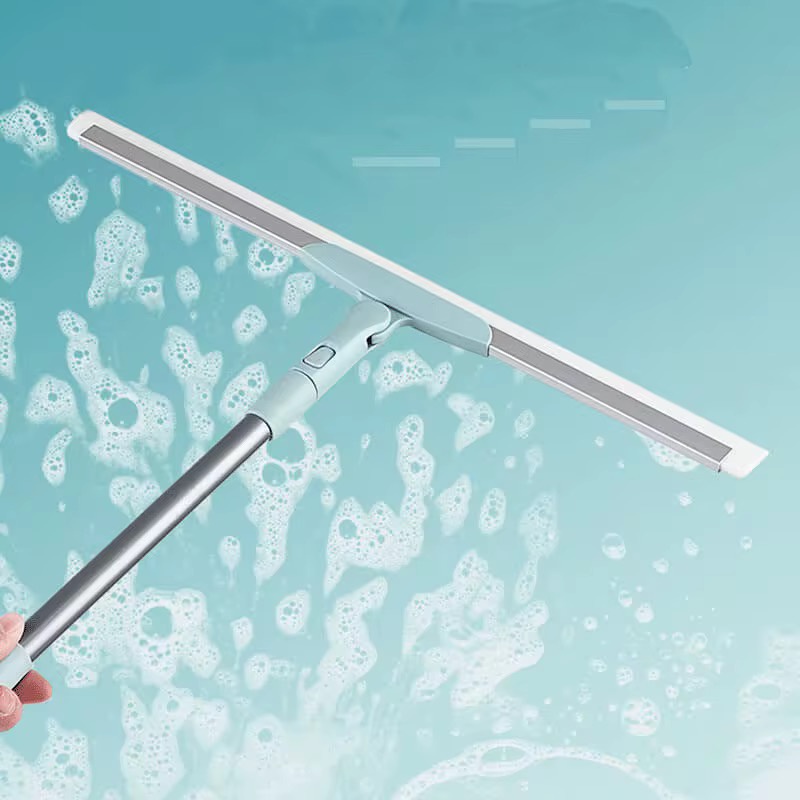 ممسحة عملية بتصميم ذكي تجمع بين الكنس الجاف والتنظيف الرطب، مزودة بشريط سيليكون مرن وذراع قابل للتعديل لتسهيل تنظيف الأرضيات والزوايا وتحت الأثاث.