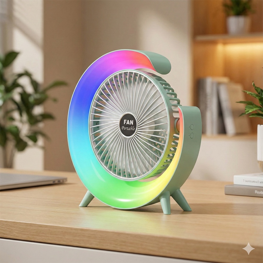 مروحة محمولة مثالية للاستخدام في المكتب أو على المكتب في المنزل للحفاظ على الهواء المنعش إضاءة ملونة جذابة يمكن استخدامها كإضاءة جوية في الحفلات أو المناسبات