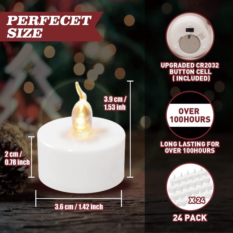 • بطارية تدوم طويلاً: كل شمعة تحتوي على بطارية CR2032 قوية، تدوم حتى 150 ساعة من الاستخدام المستمر.