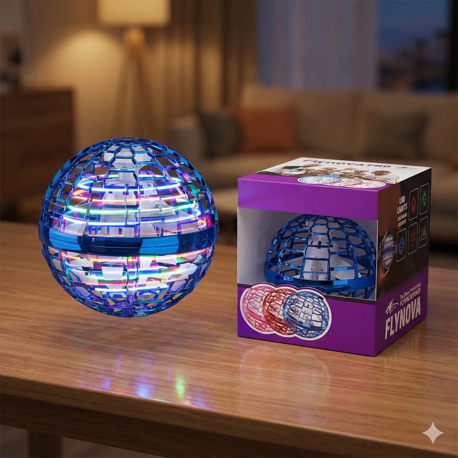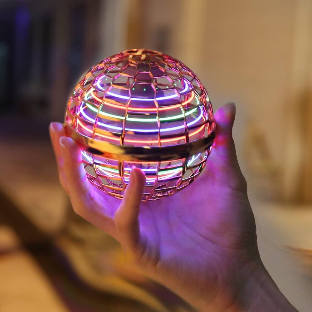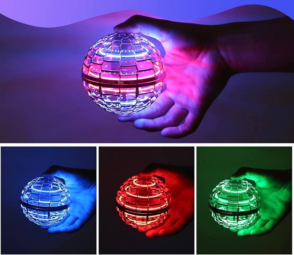 حركة 360 درجة - تصميم باضاءة ملونة عند بدء التشغيل والطيران - خاصية الطيران بمجرد لمسه بخفة باتجاهات مختلفة