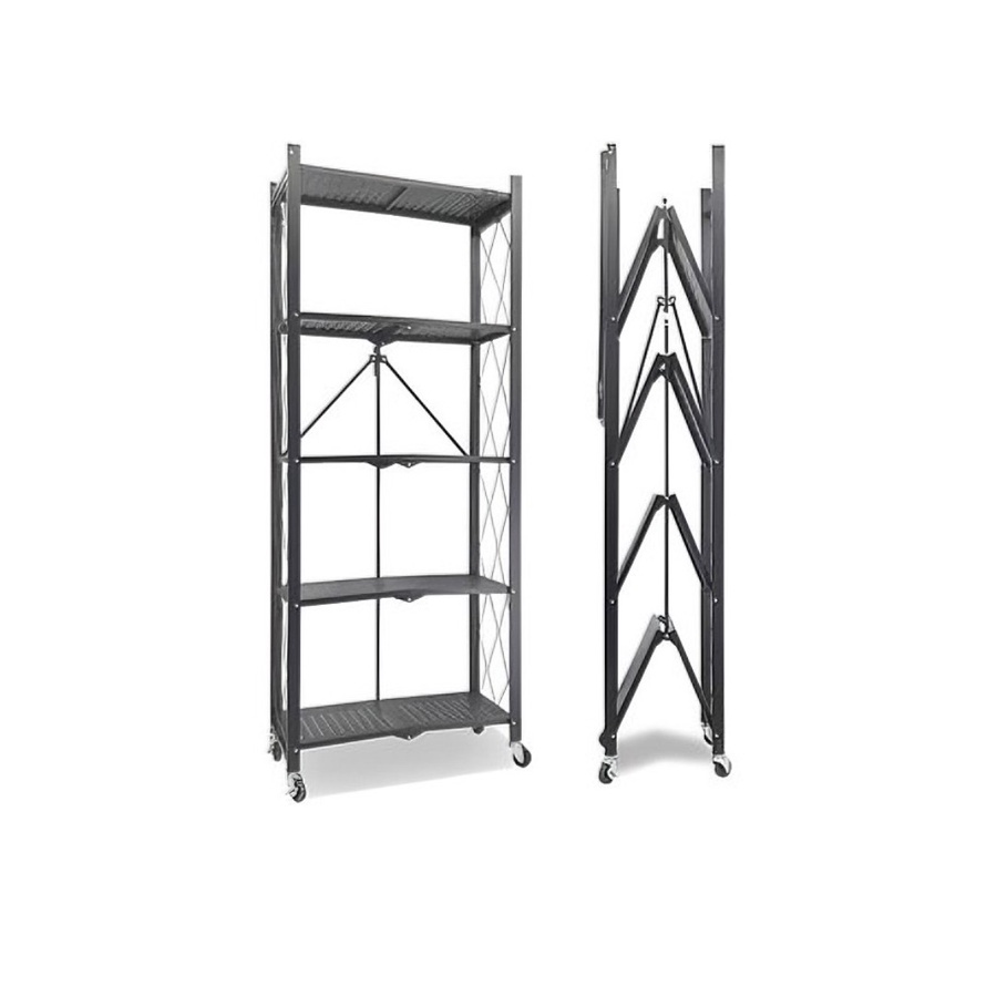 حل عملي مرن لتخزين الأغراض المنزلية بفضل رف معدني قابل للطي مكوّن من 5 طبقات