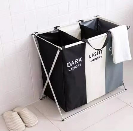 • سلة غسيل منزلية بتصميم عملي وقابل للفصل، مخصصة لتنظيم وفرز الملابس بطريقة مرتبة.
