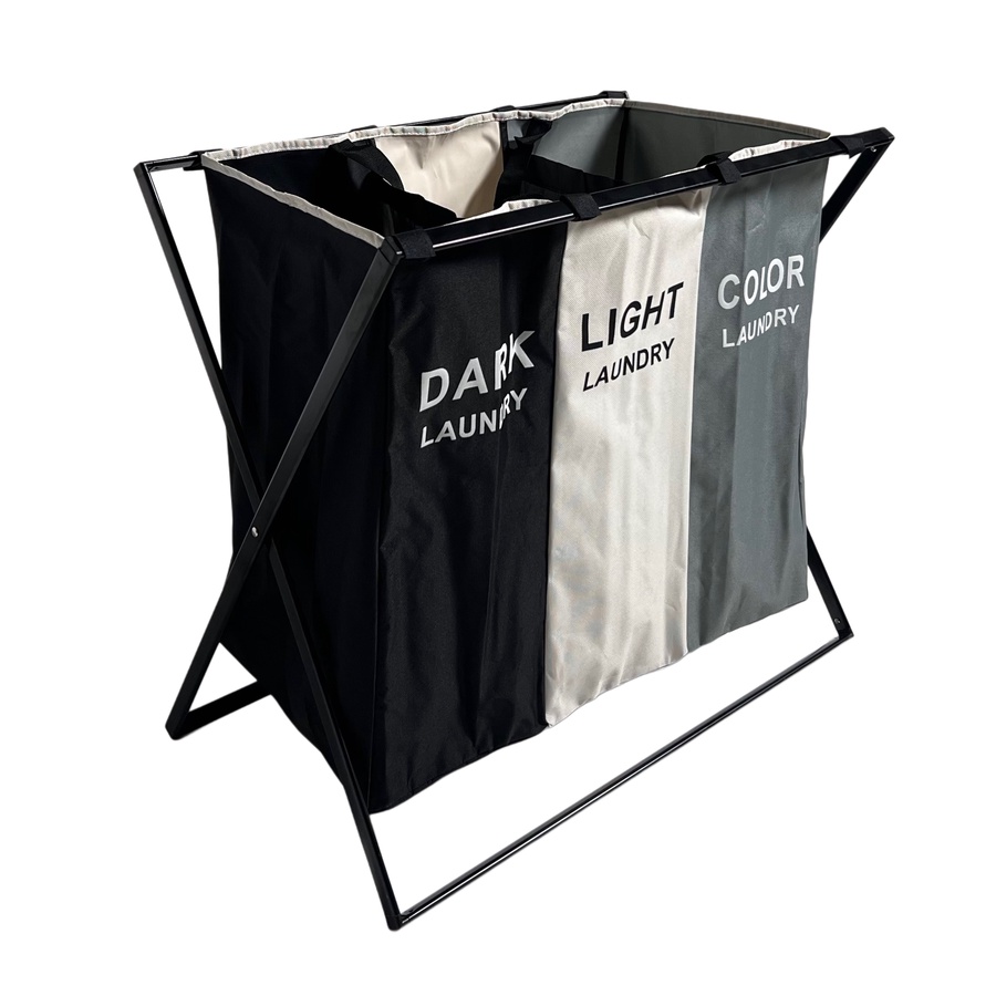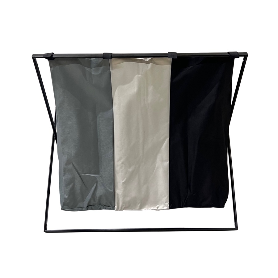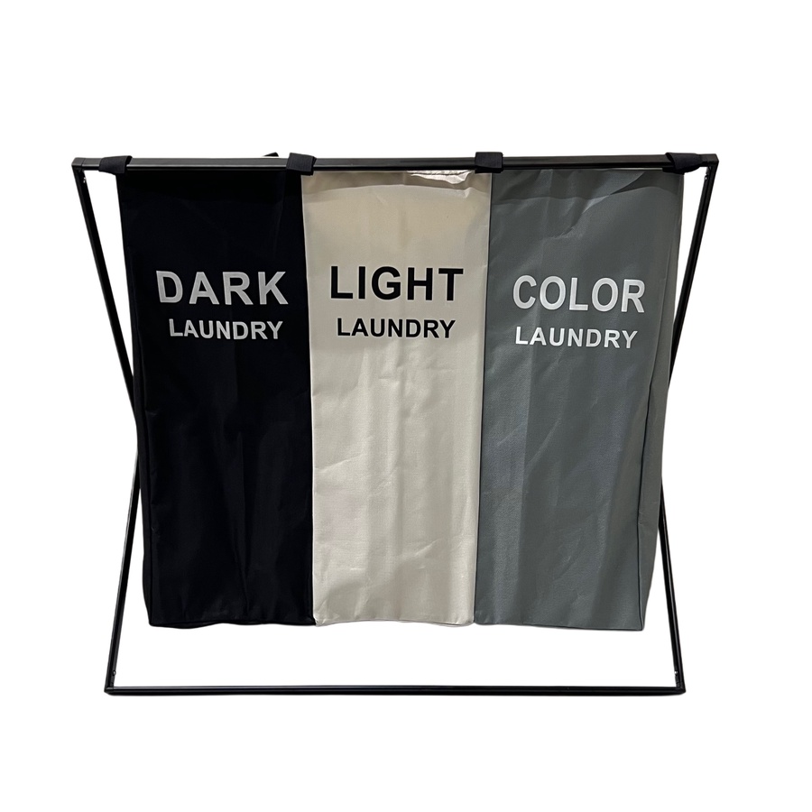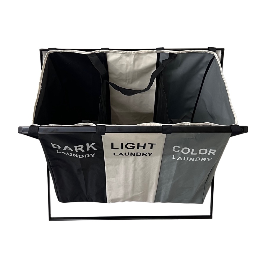 سلة غسيل منزلية بتصميم عملي وقابل للفصل، مخصصة لتنظيم وفرز الملابس بطريقة مرتبة. تعتمد على هيكل حامل من الألمنيوم مع قماش قابل للفك والتركيب