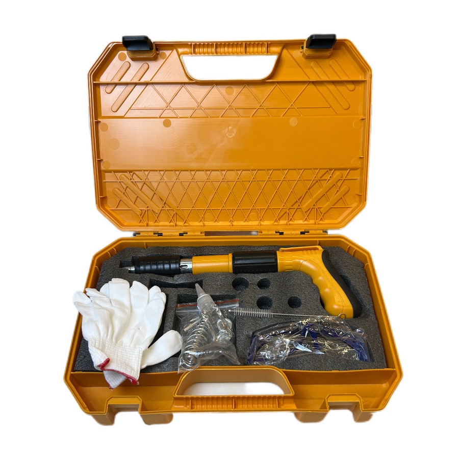 أداء قوي وثبات خارق في أعمال الخرسانة مسدس المسامير اليدوي الفولاذي هو الأداة المثالية لثقب وتثبيت المسامير في الخرسانة أو الفولاذ القاسي ، وهو مصمم للتحمّل