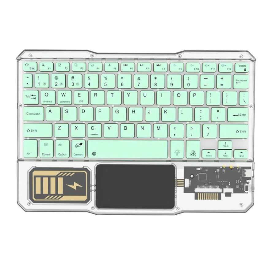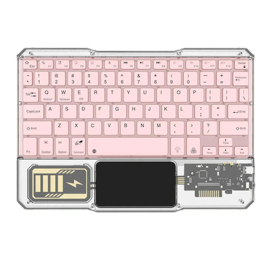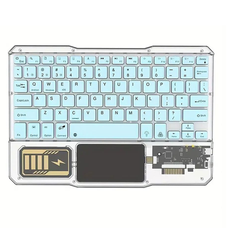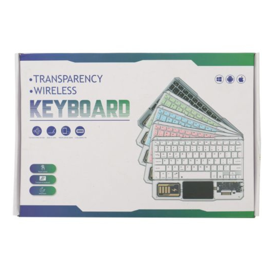 - تصميم لاسلكي انيق ذات لوح مفاتيح شفاف وضهر معدني