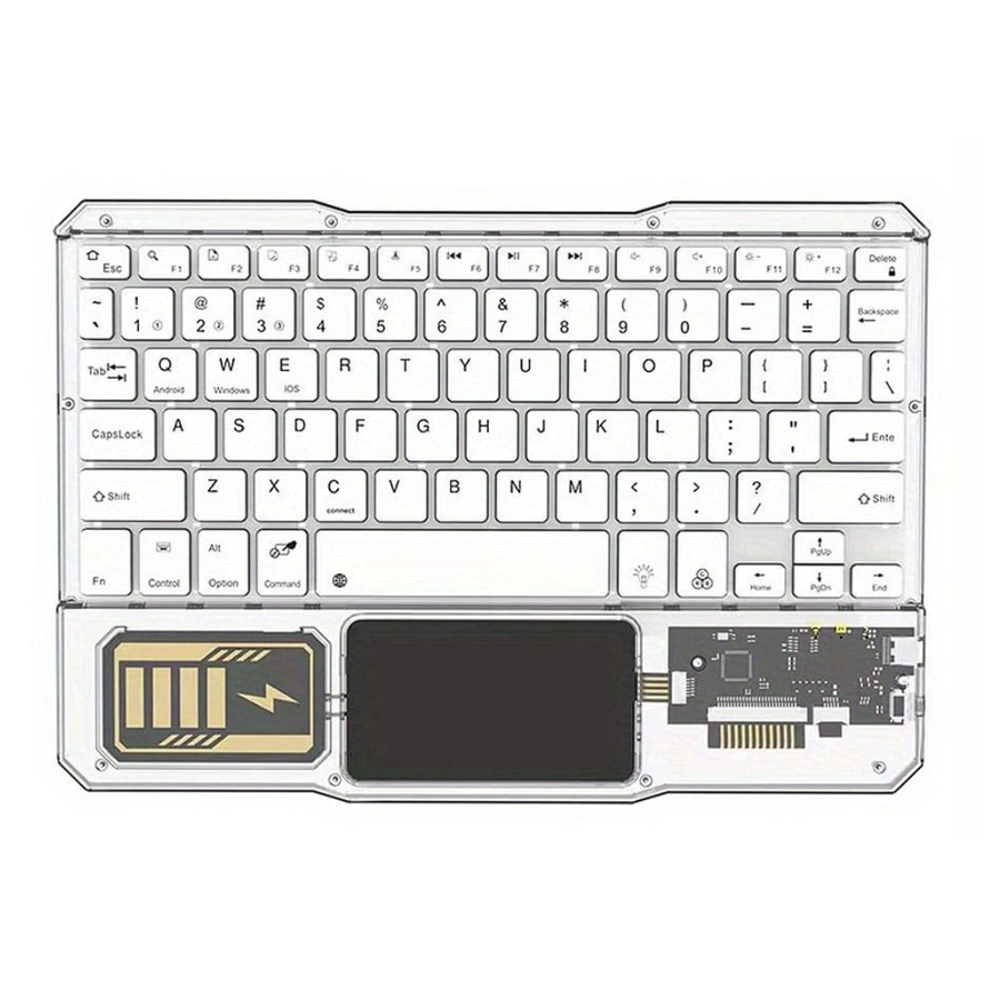 يدعم اللغة العربية والإنجليزية - تصميم لاسلكي انيق ذات لوح مفاتيح شفاف وضهر معدني