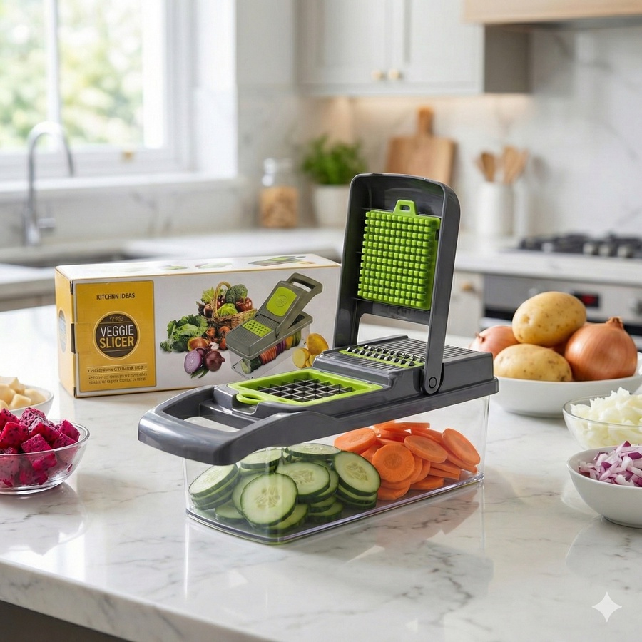 - قطاعة خضروات يدوية متعددة الوظائف، مصممة لتبسيط وتسريع مهام تحضير الطعام في المطبخ.
