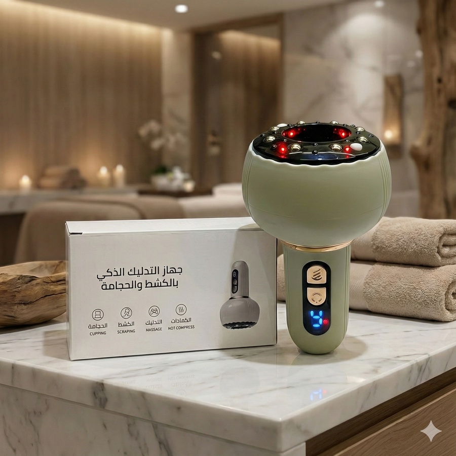 وظائف متعددة: تدليك، كشط، وحجامة في جهاز واحد تسخين ذكي: يحفّز الدورة الدموية ويخفف التوتر العضلي