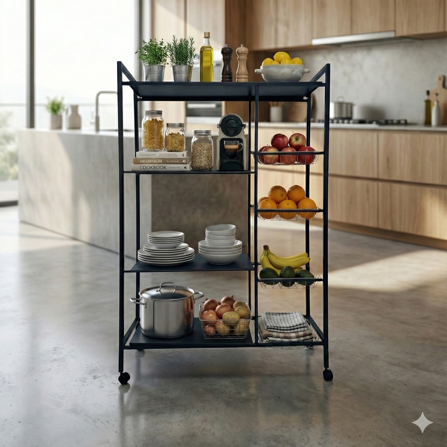مناسب لتنظيم أدوات المطبخ والبهارات والمواد الغذائية الجافة لتخزين الفواكه والخضروات بطريقة مرتبة وسهلة الوصول يمكن استخدامه كرف لطاولة الطعام أو كعربة تقديم