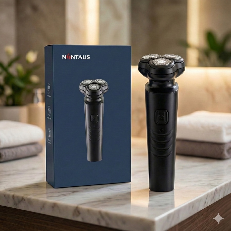 مكينة الحلاقة الكهربائية من NINTAUS تمنحك حلاقة ناعمة وسريعة مع راحة كاملة للبشرة، مثالية للاستخدام اليومي في البيت أو السفر مع تصميم عملي بثلاثة رؤوس دوّارة
