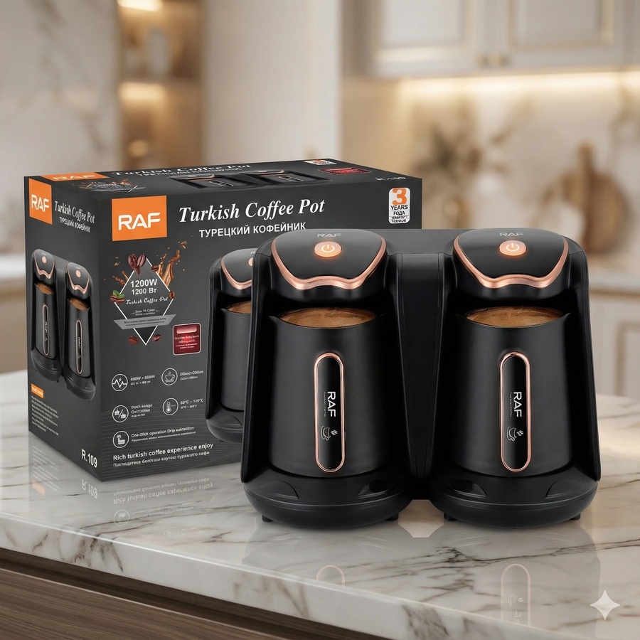صانعة القهوة التركية المزدوجة RAF R.109 جهاز عملي وأنيق مصمم لعشاق القهوة التركية الأصيلة.