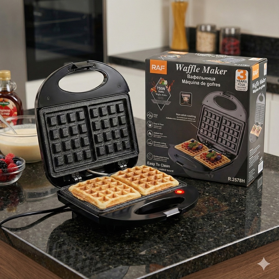 جهاز صنع الوافل من RAF مصمم للاستخدام اليومي، يجمع بين سهولة التشغيل والتسخين المتوازن لتحضير وافل بشكل منتظم.