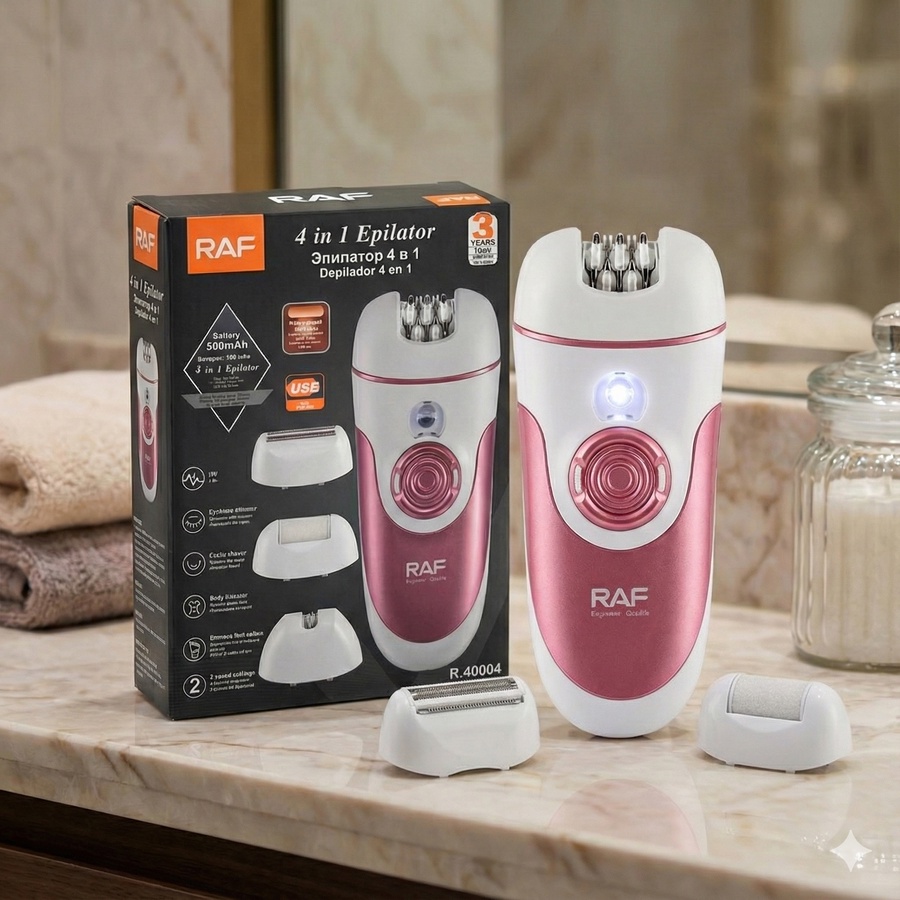 - جهاز إزالة الشعر RAF R.40004 هو حل شامل 4 في 1 للعناية بالجمال يجمع بين وظائف متعددة في جهاز لاسلكي واحد.