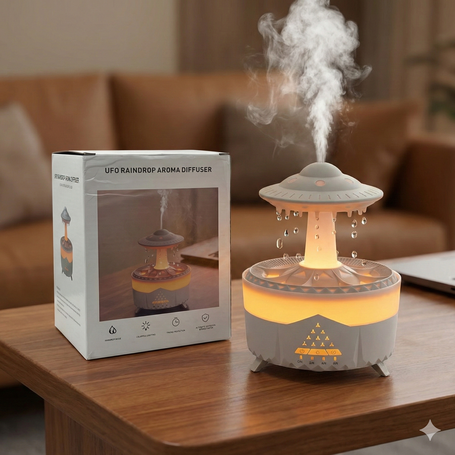 فواحة وموزع عطري بتصميم UFO مع تأثير قطرات المطر