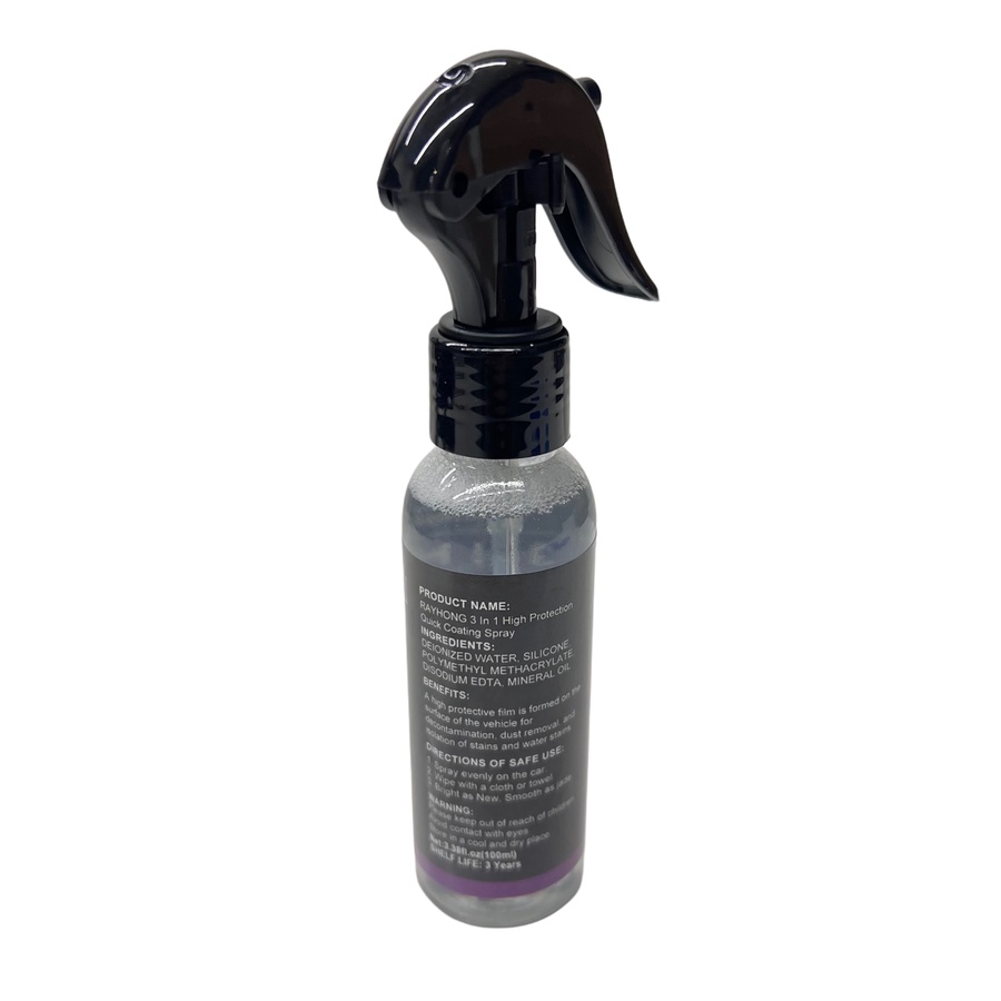 بخاخ Rayhong 3 in 1 High Protection Quick Coating Spray هو منتج مخصص للعناية بمظهر السيارة، يوفر تنظيفًا بدون ماء مع طبقة حماية سريعة تعيد اللمعان وتُحسّن الشكل الخارجي.