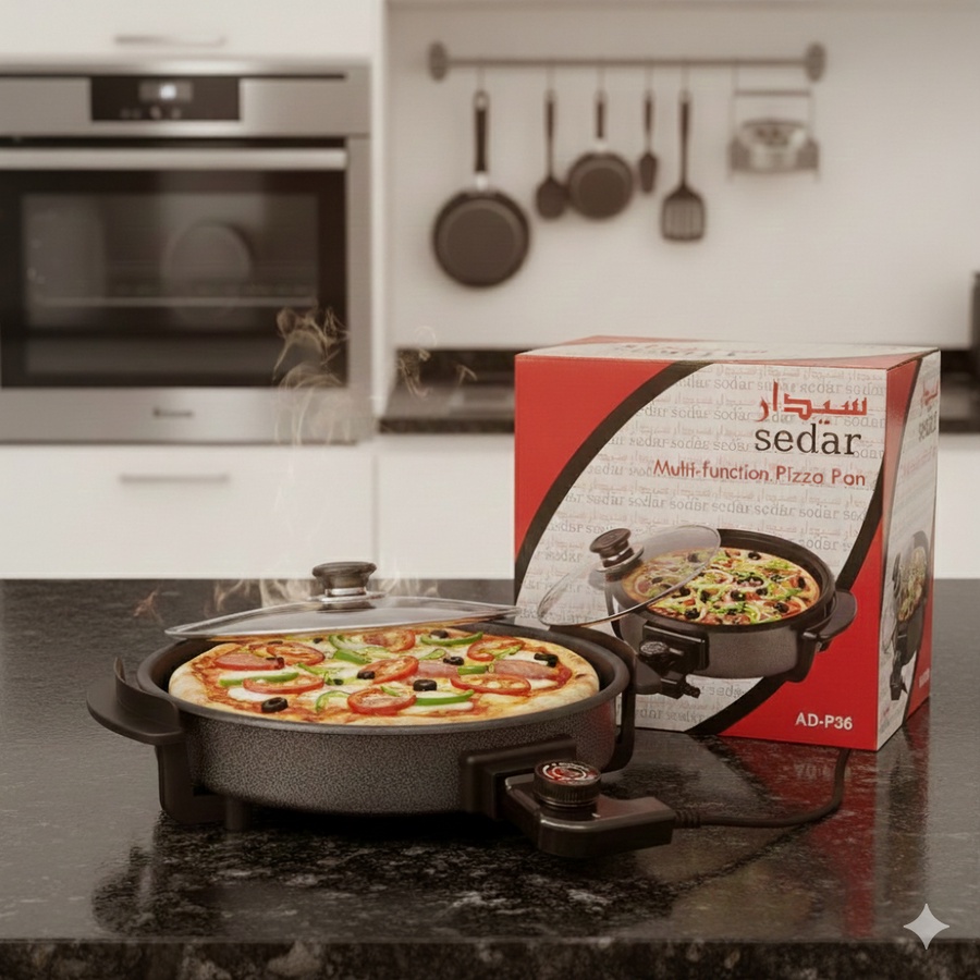 مقلاة البيتزا الكهربائية متعددة الوظائف من سيدار (موديل AD-P36) هي جهاز مثالي لمطبخك، يجمع بين السرعة والتنوع في الاستخدام.