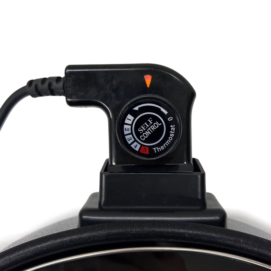 تحكم دقيق: مزودة بمنظم حرارة (ثيرموستات) قابل للتعديل مع 5 إعدادات لدرجة الحرارة تصل إلى 240 درجة مئوية، مما يمنحك تحكمًا دقيقًا في عملية الطهي.