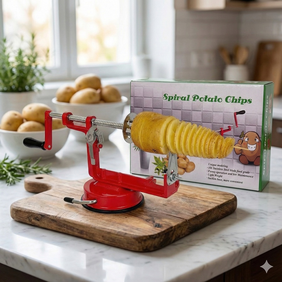أداة يدوية مخصصة لتقطيع البطاطا بشكل حلزوني لتحضير رقائق البطاطا الحلزونية بسهولة • تصميم عملي بآلية تدوير يدوية.