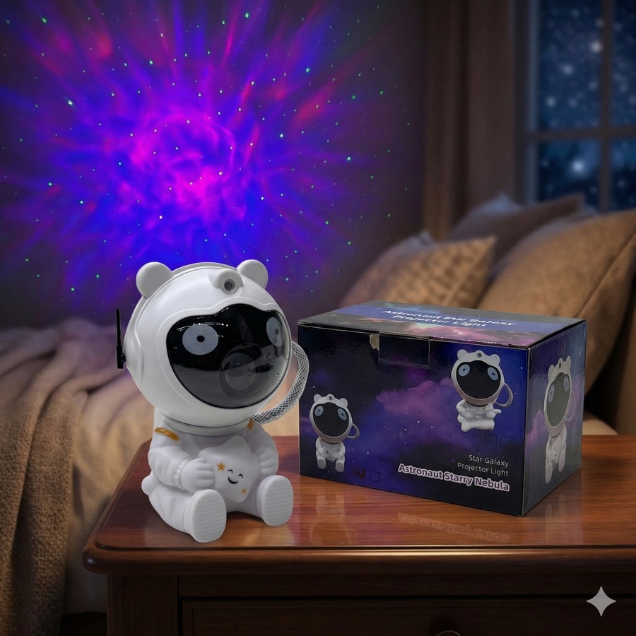 مصباح إسقاط ديكوري بتصميم رائد فضاء، يعرض تأثيرات المجرة والنجوم ليمنح المكان أجواء هادئة ومميزة.