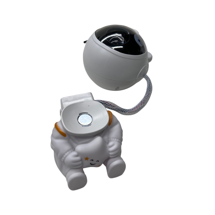 مصباح إسقاط ديكوري بتصميم رائد فضاء، يعرض تأثيرات المجرة والنجوم ليمنح المكان أجواء هادئة ومميزة. • تصميم جذاب على شكل رائد فضاء مناسب لغرف النوم والجلوس