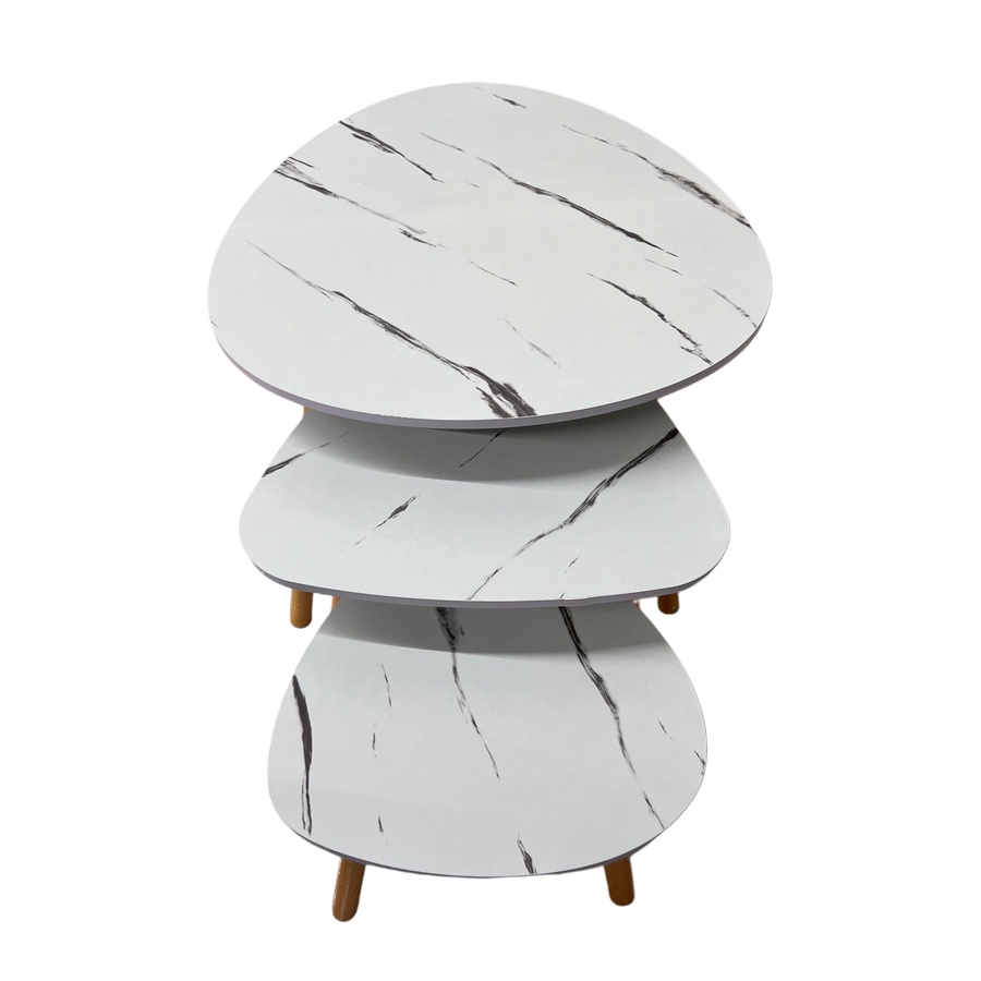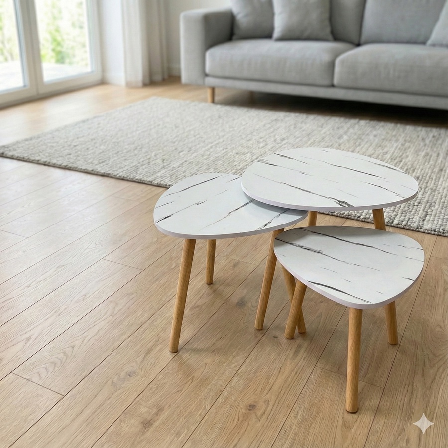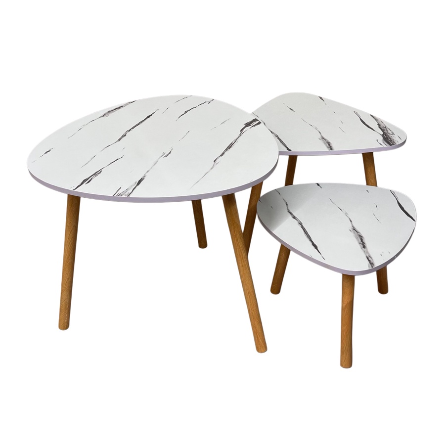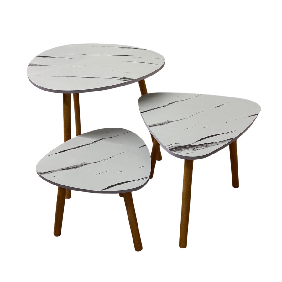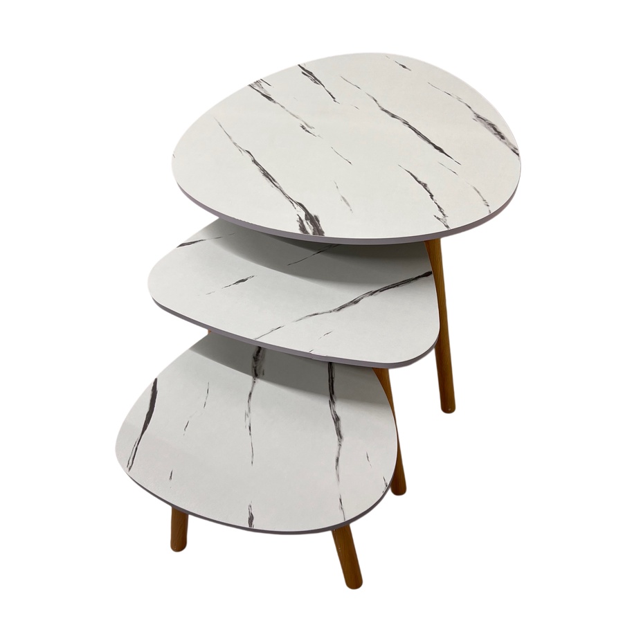 - طقم طاولات مودرن بتصميم رخامي أنيق وأرجل خشبية تصميم عصري وجذاب هذا الطقم المكون من ثلاث طاولات يتميز بتصميم مودرن يضيف لمسة جمالية راقية على أي غرفة