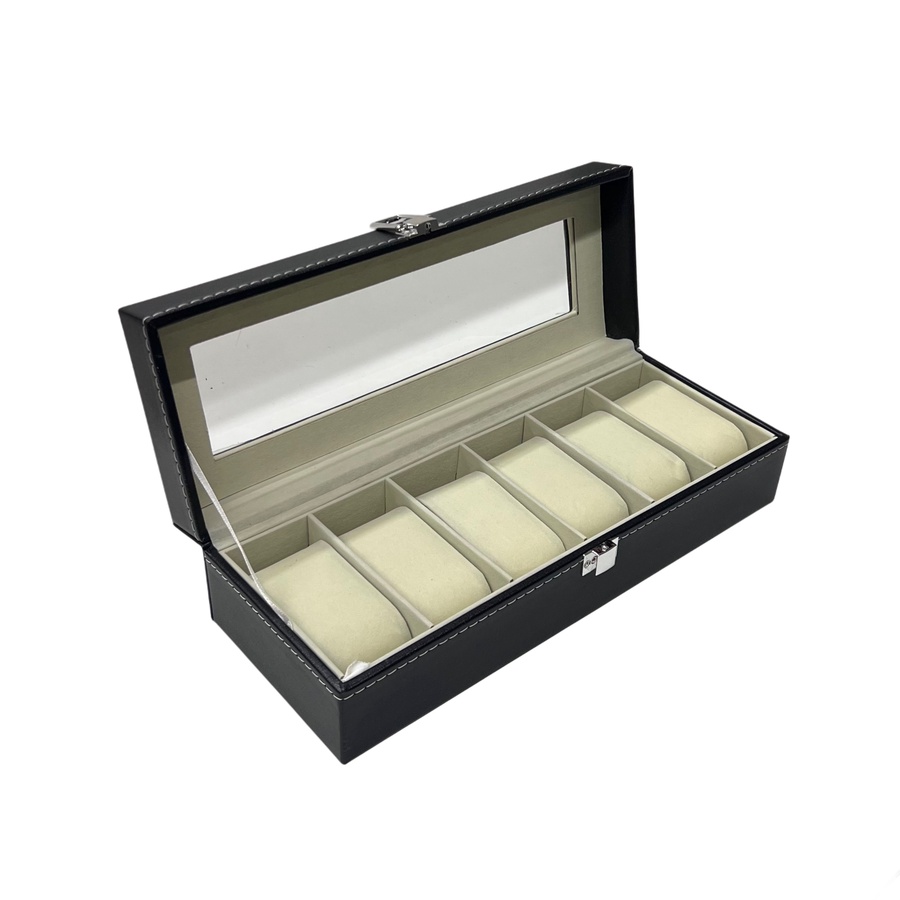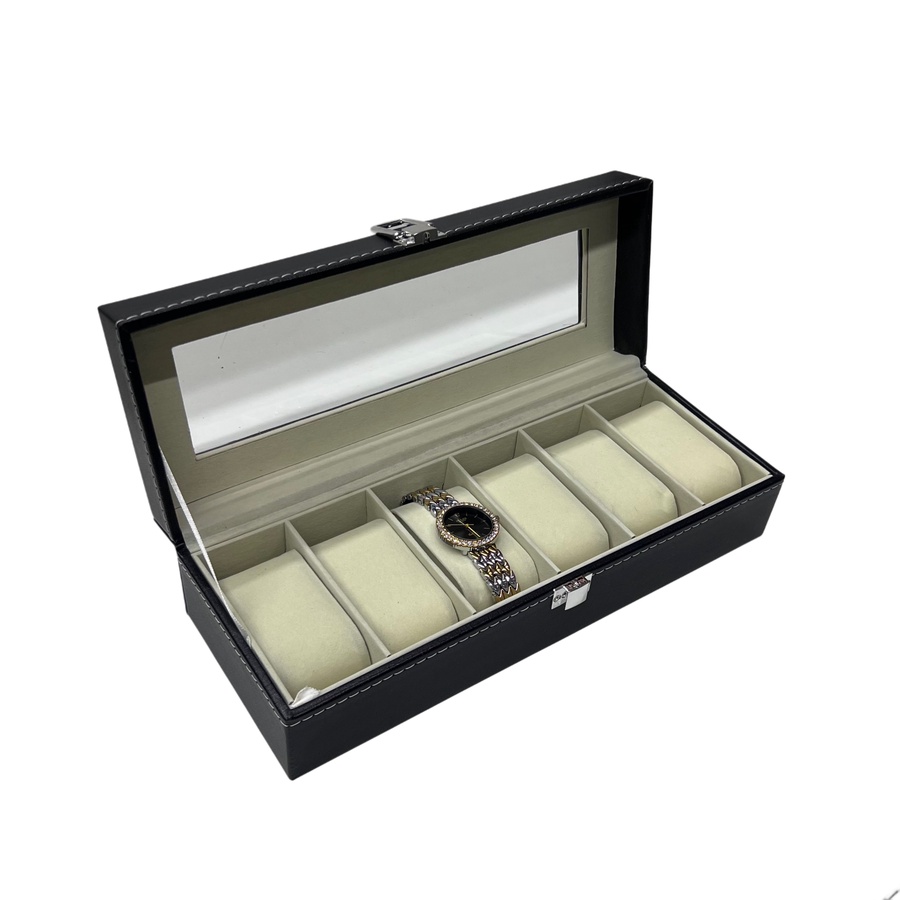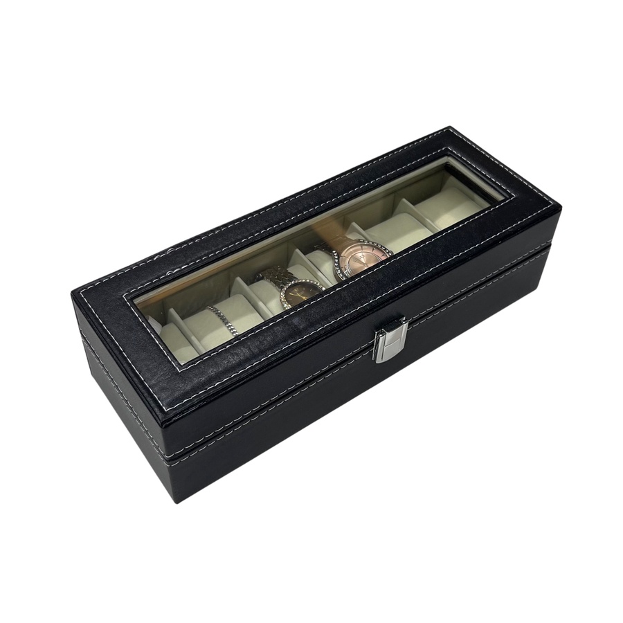 علبة تخزين ساعات يد – سعة 6 ساعات بغطاء شفاف
