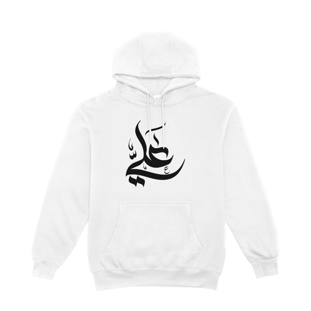 هودي ابيض بطبعة باسم علي بخط مميز