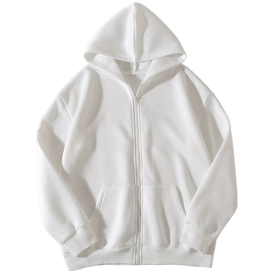 هودي ابيض مع سحاب خامة 3 خيط