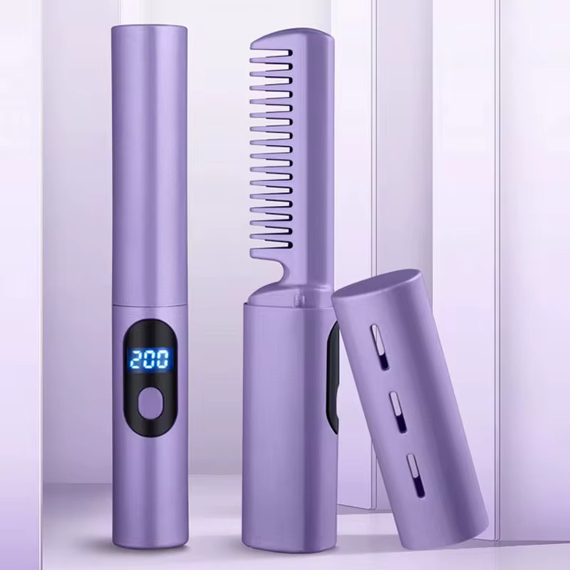 مشط فرد شعر حراري لاسلكي بتصميم خفيف ومحمول، مزود بشاشة رقمية لعرض درجة الحرارة وتحكم سهل بثلاث مستويات حرارة مختلفة ليناسب أنواع الشعر المختلفة