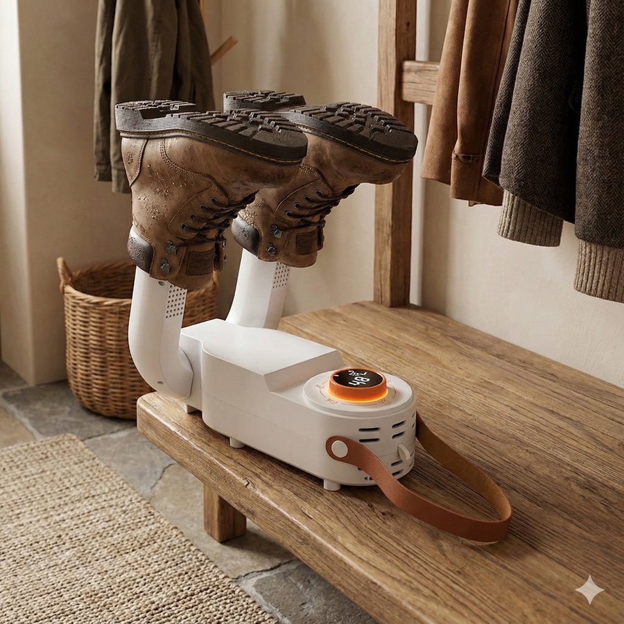 جهاز عملي مخصص لتجفيف الأحذية بكفاءة، مصمم ليمنح توزيع هواء متوازن مع تحكم بسيط بالاستخدام.