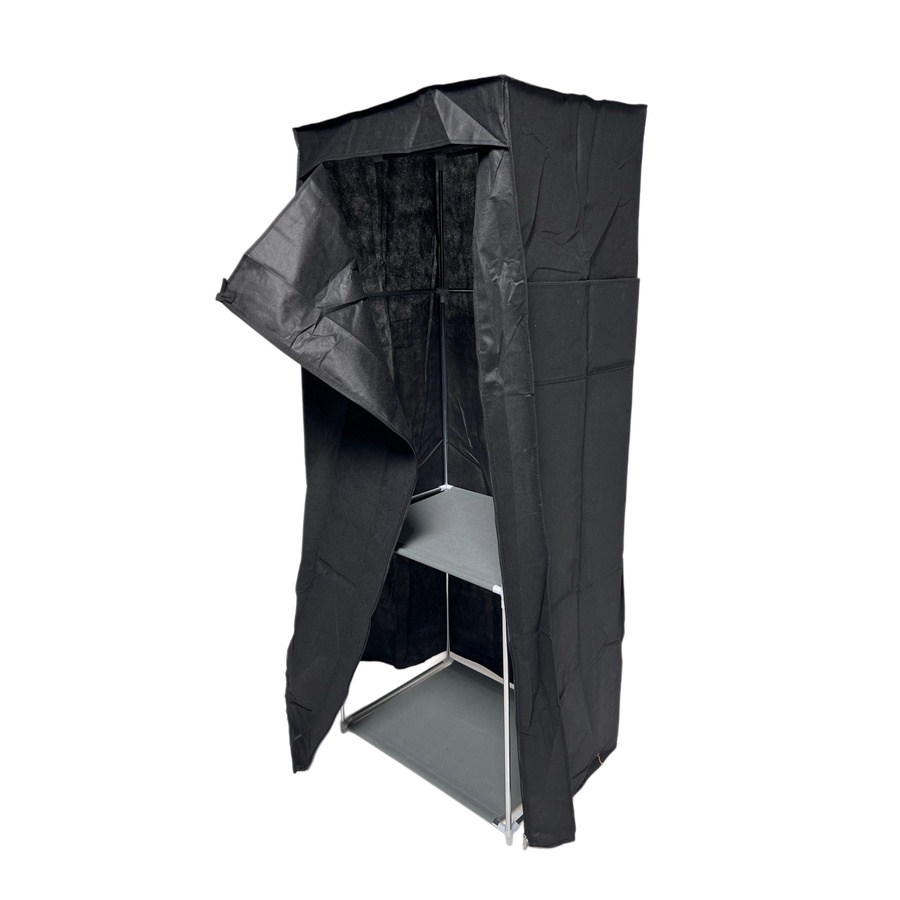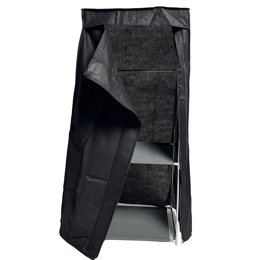 خزانة ملابس قماشية عملية بتصميم عمودي، توفّر حلاً منظماً لتخزين الملابس والأغراض مع حجم صغير يناسب المساحات المحدودة.