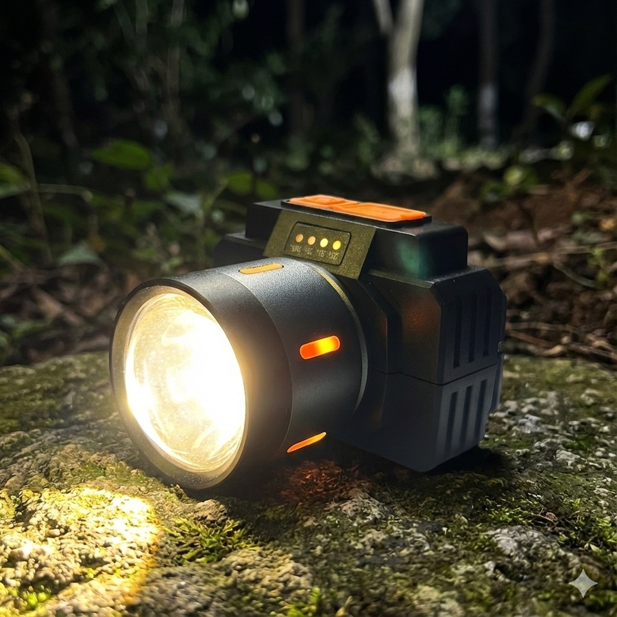 كشاف رأس عملي بتصميم تلسكوبي لزيادة نطاق الإضاءة وضبط التركيز