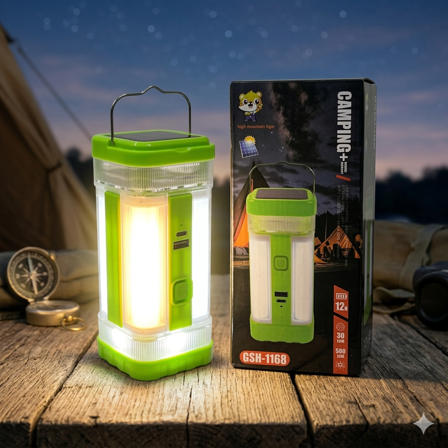 مصباح تخييم متعدد الاستخدامات LED مع لوحة شمسية ومصباح يدوي – موديل GSH-1168